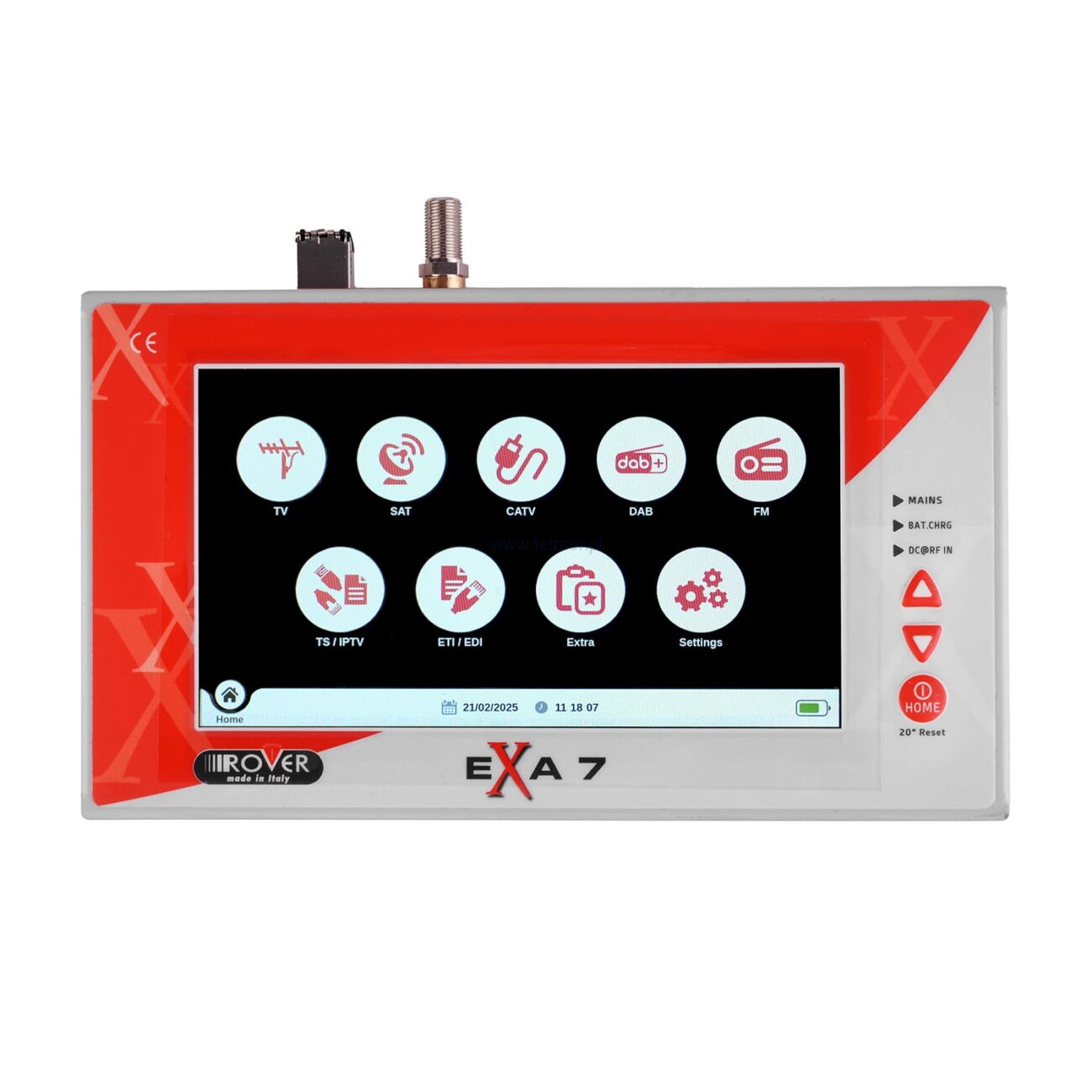 ROVER EXA 7 to profesjonalny miernik sygnału telewizyjnego, satelitarnego i IPTV, wyposażony w nowoczesne funkcje ułatwiające pomiary i analizę sygnałów. Jego intuicyjna obsługa oraz innowacyjne rozwiązania technologiczne czynią go idealnym narzędziem dla instalatorów i serwisantów.